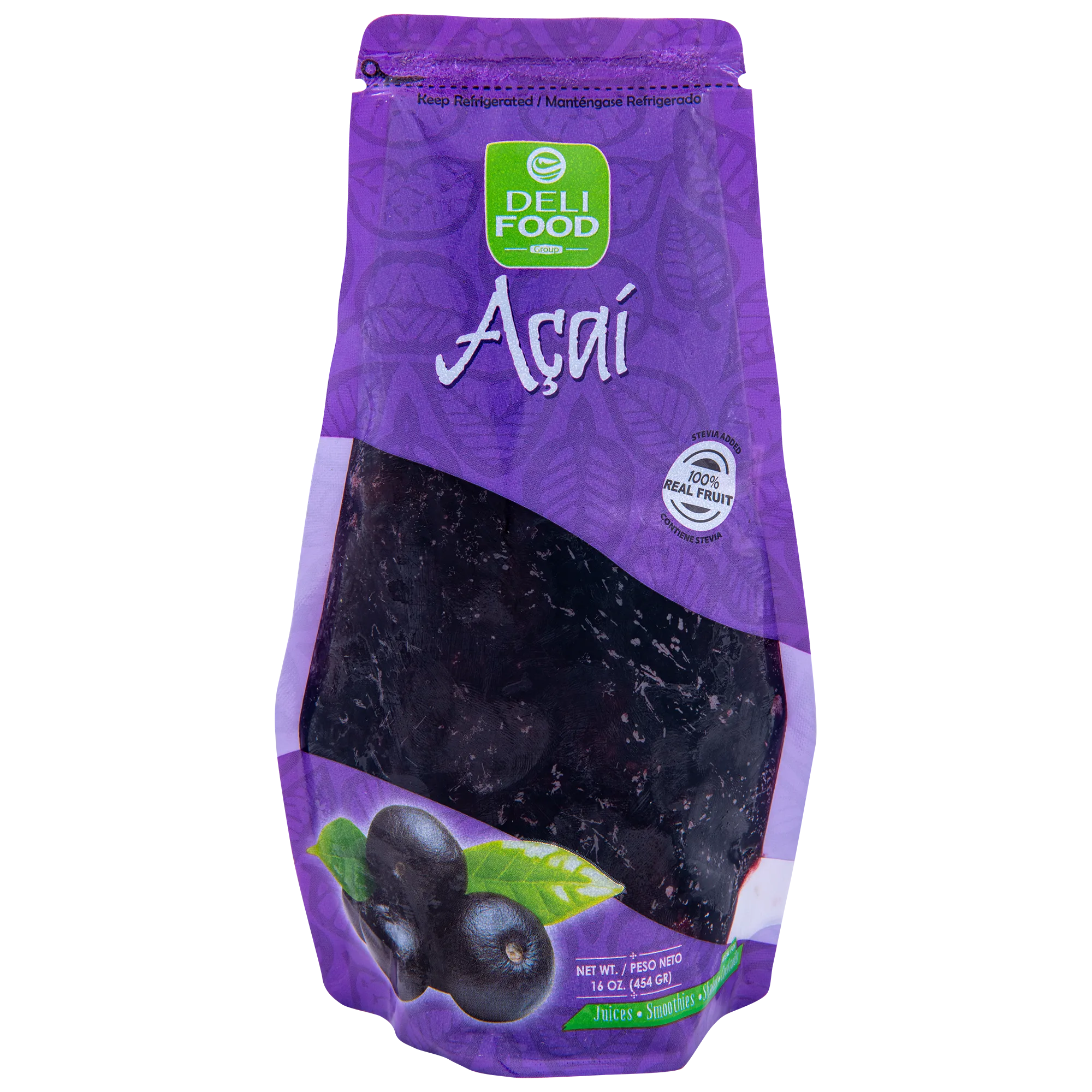 Açaí is a small, dark purple fruit from the açaí palm tree, native to the Amazon. It has a slightly tangy, berry-like flavor